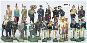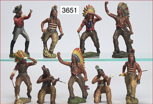 22 Teile Indianer, ELASTOLIN, TIPPEL TOPPEL u.a., Masse, 7,5 cm, meist Zust. 2-3, einige Figuren ausgebessert o. restaurierungsbedürftig