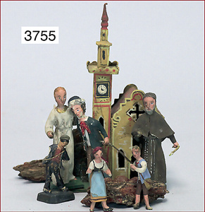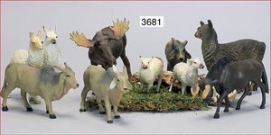 ELASTOLIN Krippe, mit Maria und Josef, 53 cm breit, 40 cm tief, 31 cm hoch, Holz/Masse, dazu 18 Teile Massefiguren u. Tiere, Figuren ca. 10 cm, absolut selten