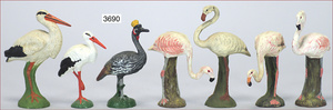 8 Teile Vögel, Masse, ungemarkt, Pelikan, Strauss, Paradiesvögel, Zust. 1-2