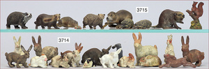 ELASTOLIN Bärengruppe, 10 cm, Jungbären darunter Jungbär m. Trinkflasche, 5 cm, Zust. 1-2