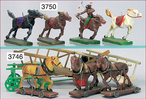 Zaunteile, Holz, 1 Leiterwagen mit Masse Zugpferd, 26 cm