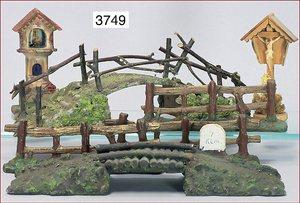 Konv. Geländeteile, Holz, Masse, Brücken, Zäune, Ruine