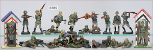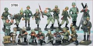 ELASTOLIN und LINEOL, Konv. Soldaten in versch. Positionen und Aktionen, altersbedingte Farbabplatzer, u.a. Soldat mit Brieftaube, Telegraf auf Pferd, Größen ca. 7,5 cm