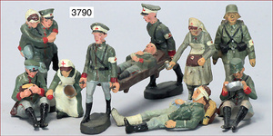 ELASTOLIN u. LINEOL 5 Teile Lagerleben, Mann am Bügelbrett, 3 Figuren waschend, Eimer fehlt, Arzt mit Verwundetem, 7,5 cm, teils etw. ausgebessert, Zust. 2-3