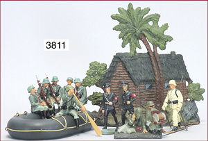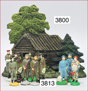 Konv. Masse, 2 x SS, übermalt, 6 Teile Fahrerfigur, Nachguss, 1 Schlauchboot, Neuanfertigung, Skifahrer, Neuanfertigung, Blockhütte, neuer