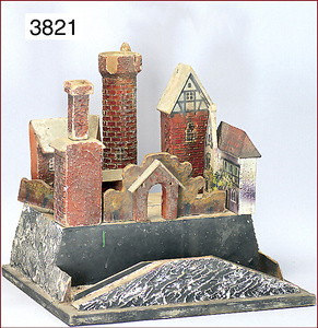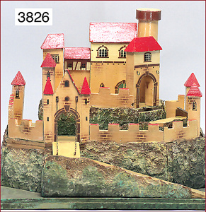 Ritterburg, Holz/Masse, bis auf kl. Stücke weitgehend komplett, Grundplatte 37 cm x 49 cm