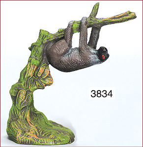 Faultier am Baumstumpf, Masse, ungemarkt, 10,5 cm, dazu LINEOL, Fels mit Tanne, Spitze kl. Bruchstelle, sonst Zust. 1-2