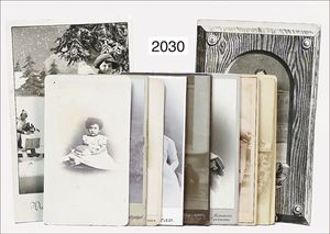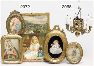 Konv. Puppenstuben-Bilder, Messingblech vergoldet, 5,5 cm bis 8 cm, untersch. Rahmen, dazu 2 Bilder, Motiv Kinder mit Spielzeug