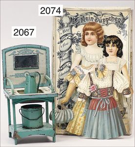 Spiel, "Mein Püppchen", um 1900, im Orig.-Kart., mit Anweisung, Papier-Puppenschablone, mit vielen versch. Kleidungsmustern, sehr guter Zust.