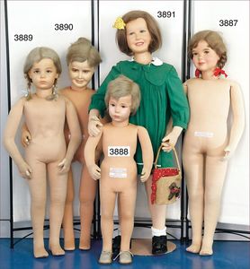 KÄTHE KRUSE Schaufensterpuppe, Mädchen, 1,02 m, feste Beine, Arme angenäht, an den Händen aufgegangen, Echthaarperücke