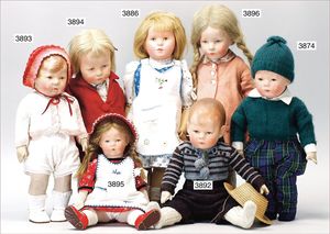 KÄTHE KRUSE Visibilia, 46 cm, Trikot-Körper, weich gestopft, mit gegliedertem Kunststoff-Gestell, Orig.-Kleidung, unbespielt, im Orig.-Karton