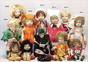 LENCI Mädchen, 50 cm, Filz, seitl. blickende braune Augen, Echthaarperücke, etw. Filzabrieb auf Nasenspitze, rechter Wange und Kinn, Orig.-Kleidung
