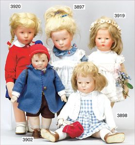 KÄTHE KRUSE Schaufensterpuppe, Mädchen, 1,20 m, schöne Bemalung, Orig.-Wimpern, Orig.-Perücke, Arme fest, mit Käthe-Kruse-Etikett, sehr guter Zust.