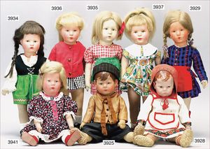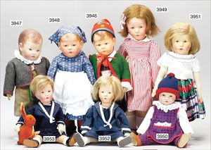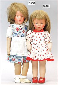 KÄTHE KRUSE Mädchen, 49 cm, Kunststoffkopf, Echthaarperücke, Gesicht stellenweise überstrichen, Stoffkörper, bespielt