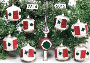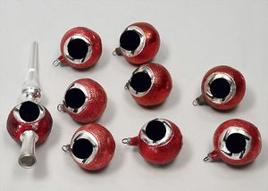 Nationalsozialistisches Weihnachtskugel-Set, rot, 8 Kugeln, passende Spitze, Vorder- und Rückseite HK-Motiv, im Orig.-Kart., guter Zust.