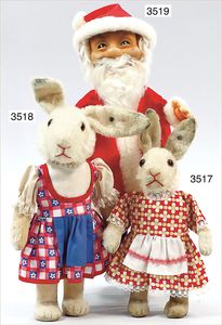 STEIFF Handpuppe, Santa Claus, ca. 1960, mit Knopf, Schild und Fahne, Nr.0121,00, 25 cm, Kunststoff-Kopf, schöne kräftige Farben, unbespielter Zust