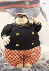 STEIFF Kapitän, Filzfigur aus der Comicserie ''The Katzenjammer Kids'', ca. 1910, mit blankem Knopf, 38 cm, mit Mütze, unbespielter Zust., selten