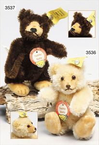 STEIFF Teddy-Baby, mit Knopf, Schild und Fahne, Nr. 7309, dunkelbraun, Samttatzen in gutem Zust, schöner Ausdruck
