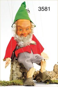 STEIFF Zwerg, Gucki, als Marionette, mit Schild, Steiff-Knöpfe am Hut, Filzkleidung im guten Zust.
