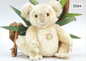 STEIFF Treff, sitzend, mit Knopf, Schild und roter Fahne, Nr. 3314, mit Drehkopf, hergestellt ca. 1928, 12 cm Sitzhöhe, guter Zust.