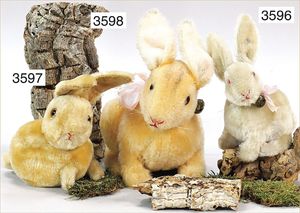 STEIFF Wollplüsch-Hase, mit Knopf, langgezogenes F, drehbarer Kopf, sitzend, Sitzhöhe ohne Ohren 18 cm