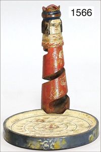 sehr frühes Holz-Kugelspiel, geschnitzt, lackiert, Figur mit angedeuteter Nase, Tellerdurchm. 15 cm, ca. 1820, museal
