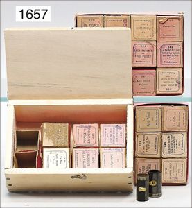 Konv. Glasbilder, für Laterna Magica, ca. 50 Teile, meist 26 cm x 6,5 cm, meist guter Zust., ein paar beschädigt, dazu 1 Farbenrad