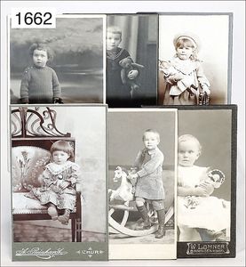 Konv. 30 Teile, Kinderphotos, mit Spielzeug, meist um 1900, dazu ein paar Photos neuer, 10,5 cm x 6 cm