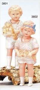 SCHILDKRÖT Rudi, Celluloidpuppe, gemarkt SiR Germany 12, modellierte Kleidung, Frisur, Schuhe und Blumenstrauß, kl. Druckstelle an den Blumen, Riss an der re. Hand