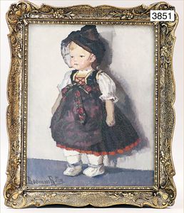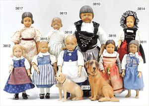 LENCI Mädchen, 35 cm, Stoff, seitl. blickende gemalte Augen, Filzkörper, Orig.-Trachtenkleid, Filzhut mit Blütenkranz, sehr guter Zust.