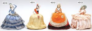 Porzellan-Halbpuppe, glasiertes Porzellan mit anmodelliertem Schleier, Spanierin, Stoff bezogen, 20 cm
