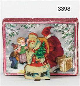 Pappschachtel, Weihnachtszene, 20er Jahre, lithogr., 11,5 cm auf 9 cm, kl. Blech-Weihnachtsmann, lithogr.