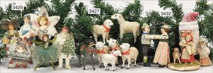 Konv. Christbaumschmuck, 2 Candy Container mit Masse-Gesicht, 1 Trachtenpaar, Holz/Masse, 1 Watte-Mädchen mit Hund, Kreppkleidung, Oblatengesicht, 1 Engel, Glasteil