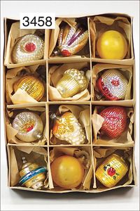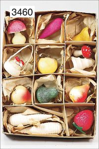 übergroße Spiegelglas-Christbaumkugeln, Zapfen, Mondgesicht, Zitrone, Trauben, 14 cm bis 16 cm, früh