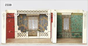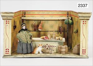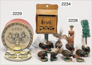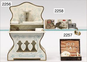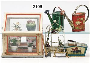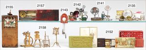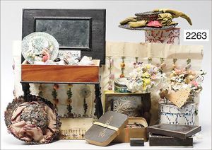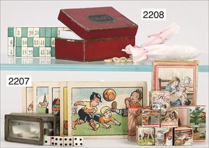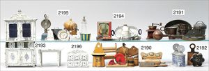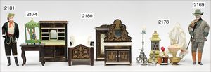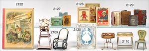 unusual doll books, 1 x leather embossed doll book with knight on the front board, 1910, blank pages are partially write on, 7 cm, 1 x doll book with cover made of leather and tin, cover stamped with angel heads, "Common Payer", maufacturer stamp WJM & Co., different psalms, 5 cm, 1 x unusual doll book, leather bound with very nice unusual tin ornaments, with clasp, blank pages, partially write on, 7 cm, 1 x doll book, with handcoloured pictures, "Des Salons", 6 cm, back is missing, a very nice mixed lot