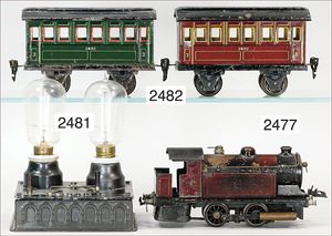 Penny-Toy, wohl HESS, Lokomotive mit 2 Wagen, Blech lithograph., ca. 1910, dazu 1 Wagen defekt