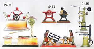 FLEISCHMANN 6 Teile, Antriebsmodelle, Mann am Schleifstein, Mann am Amboss, 1Schleifstein, Windrad, Windmühle, Farbenrad, 1 Transmission, guter Zust.