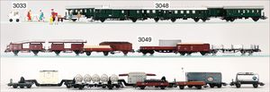 32 Güter- und Personenwagen H0, Rocko u.a., dazu Triebwagen Ricks International, alles ohne Karton, meist guter Zust., nicht alle Teile fotografiert