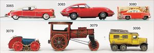 Konv. Blechspielzeug, Rennwagen Auto Union, 15,5 cm, Uhrwerk intakt, bespielt, SCHUCO Studio, Uhrwerk defekt, bespielt, MÄRKLIN Porsche 356, Polizei, 1 Rennwagen wohl HUCKY