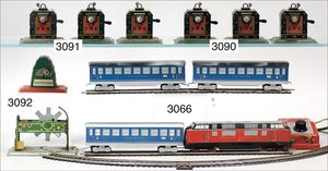 MÄRKLIN Neue Spur 1, 5440, Zugpackung, Tenderlok-Personen- und Güterwagen, Gleismaterial, Transformator, neuwertig, Original-Karton