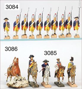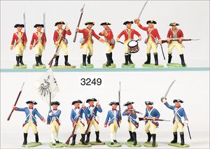 ELASTOLIN amerik. Unabhängigkeitskrieg, Kunststoff, 7,5 cm, ca. 30 Figuren marschierend und kämpfend, Fahnenträger, meist sehr guter Zust.