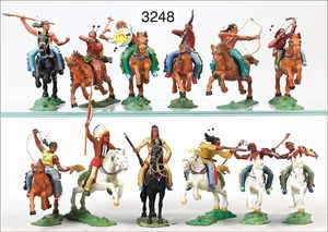 ELASTOLIN Indianer, Kunststoff, zu Pferd, 13 Teile, 7,5 cm, meist sehr guter Zust.