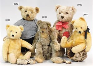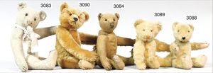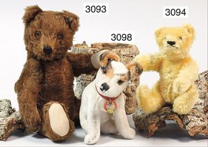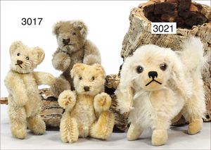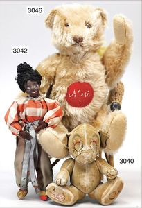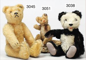 STEIFF 3 Teile, 1x grauer Bär, 7 cm, silberner Knopf, Biege-Arme und -Beine, minimale Reste der gelben Fahne, 1 Bär, maisfarben, etw. abgeliebt, 8 cm, 5-fach gegliedert, 1 Bär ca. 1940, maisfarben, ein wenig abgeliebt, 9 cm