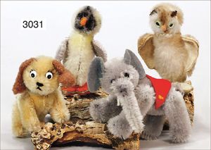 SCHUCO Konv. 4 Teile, 1 x Hund, 5-fach gegliedert, 1 x Hase, ebenso 5-fach gegliedert, 1 x Bär mit Kleid, Hund