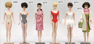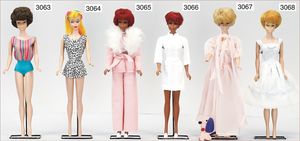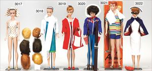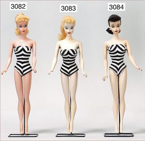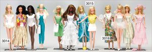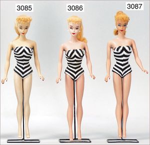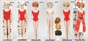 MATTEL Barbie, Fashion Queen, Ohrringe fehlen, an den Ohrlöchern etwas verfärbt, im Orig.-Badeanzug, dazu 3 Perücken