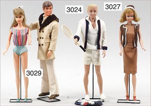 MATTEL Barbie und Ken, 70er Jahre, bespielt, Ohren etwas ausgeblichen, Farbabrieb an den Lippen
