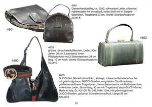 Konv. 3 Damen-Handtaschen, 1 x Dollargrand London, Kunstledertasche, Innenfutter Stoff, mit Spiegel, 12 cm x 10 cm, Henkel stark abgenutzt, 1 x Damenhafte, Stofftasche, Valmoda, beige, Innenfutter Seide, dazu passend Seidengeldbeutel, 15 cm x 12 cm, leicht verstaubt, 1 x Ledertasche, 8 Ecken geprägt, Stoffinnenfutter, kurzer Lederhenkel, 16 cm x 10 cm
