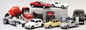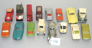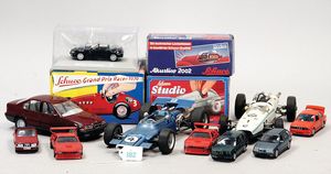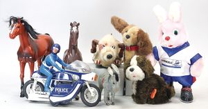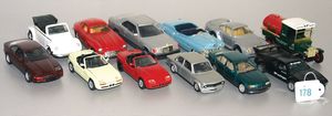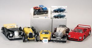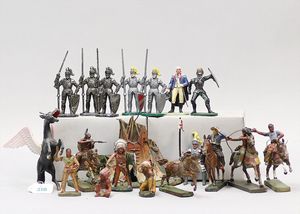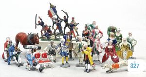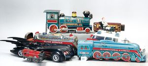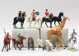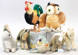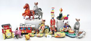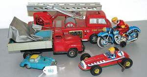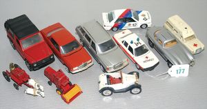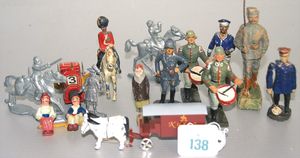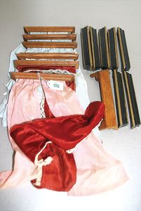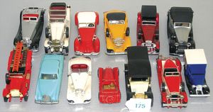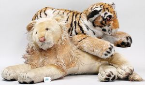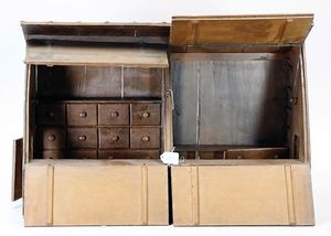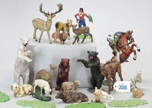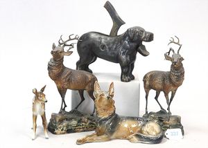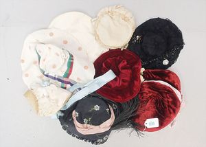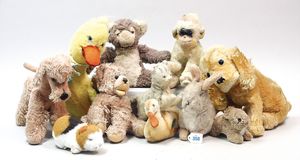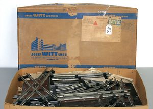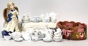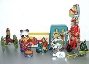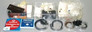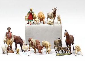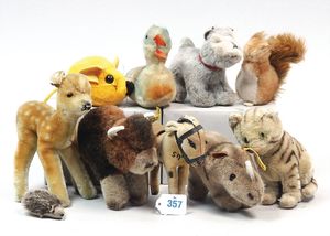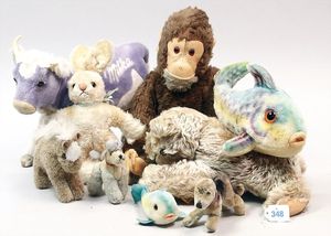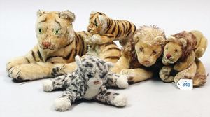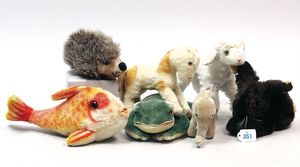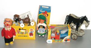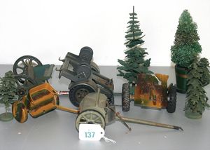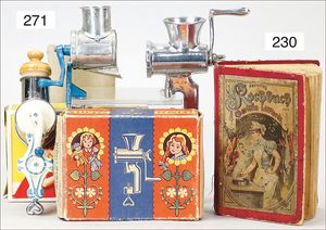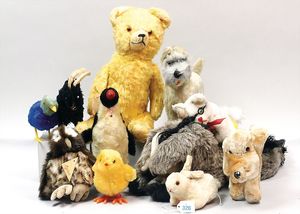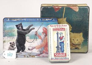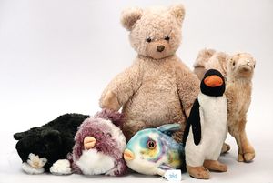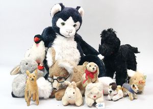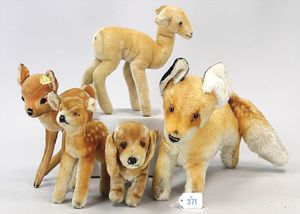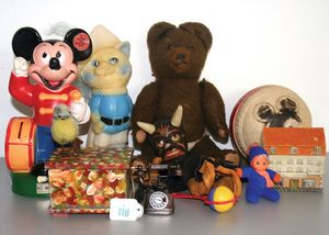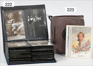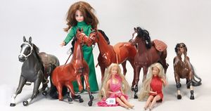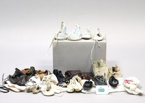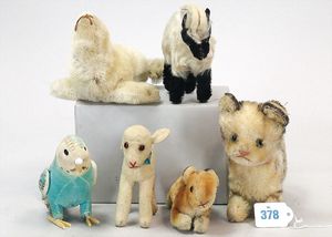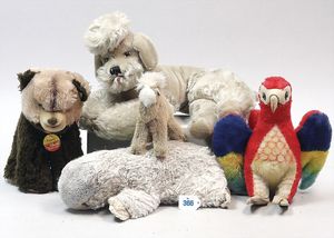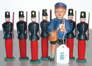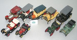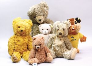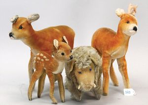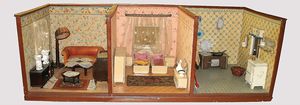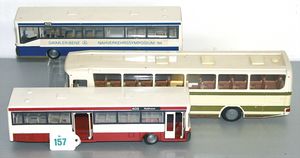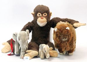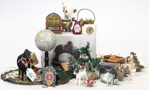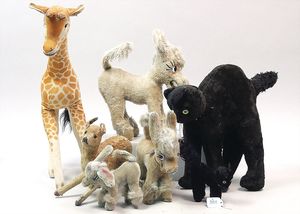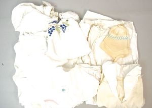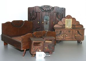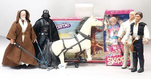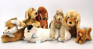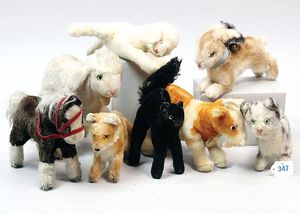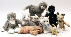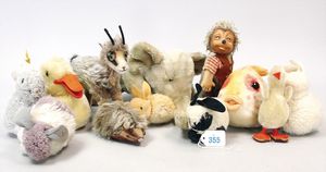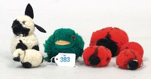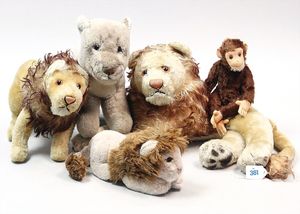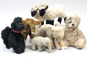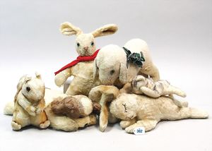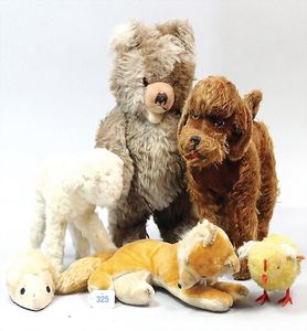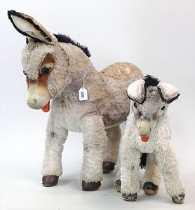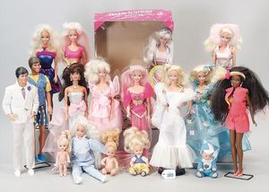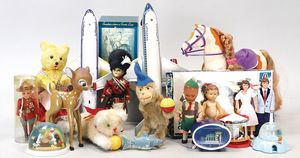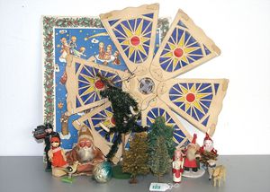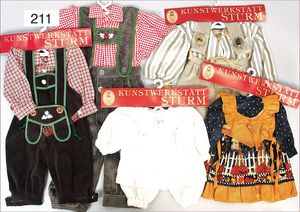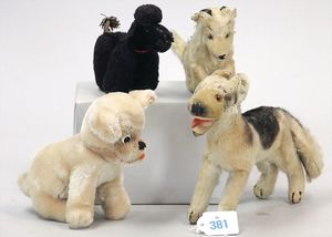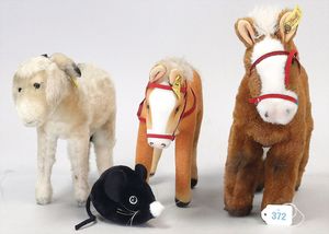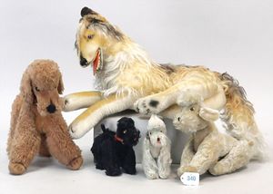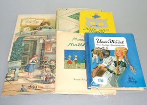 3 Puppen, Masse-Puppe gemarkt Sonneberg 2966, braune Schlafaugen, off. Mund, Zähne, Echthaarperücke, einfacher Masse-Stehkörper, 57 cm, dazu Pappmaché-Brustblattkopf-Puppe, gemarkt AM Doll.Co, modellierte Frisur, gemalte Augen, auf Stoffkörper, Holzwolle gestopft, Masse-Arme, 65 cm, Celluloid-Puppe, Kopf weggebrochen, liegt lose bei, braune Schlafaugen, off. Mund, 2 Zähne oben, Mohairperücke, Masse-Stehbabykörper, ca. 55 cm
