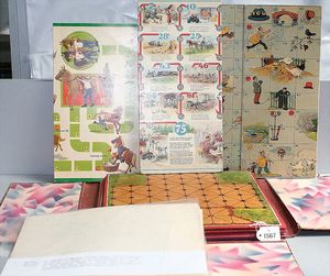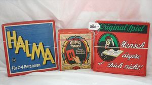 Konv. 3 alte Spiele, 1x Halma, 1x Mensch ärgere dich nicht, 1x 11 Voraus, dazu 1 Telegraphenwerbung vom Luftschiff Graf Zeppelin, 17. Mai 1929