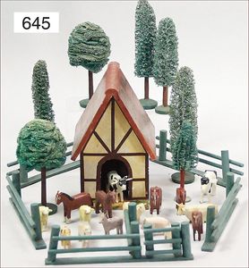 Erzgebirge, Gatterkoppel mit Außenstall und versch. Luffa-Bäume, 6 Zaunteile mit Tor, 33 Reifentiere bemalt